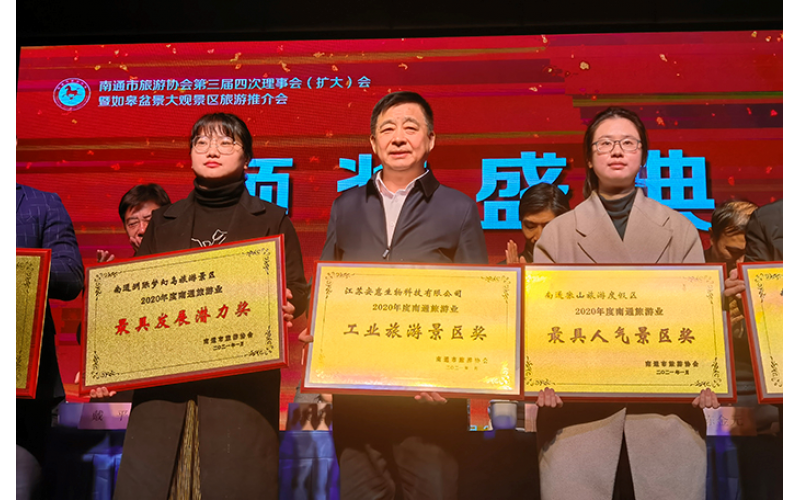 2021年3月2日,南通市旅游協(xié)會三屆四次會員大會在長壽之鄉(xiāng)——如皋召開。安惠生物科技園獲評2020年度南通旅游業(yè)“工業(yè)旅游景區(qū)獎”,安惠公司董事長陳惠榮獲2020年度南通旅游業(yè)“突出貢獻獎”,并當選南通市旅游協(xié)會副會長。