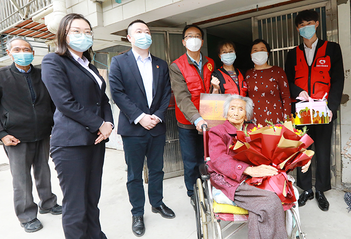 2022年5月10日,安惠江海志愿者代表與“期頤(百歲)老人慰問及志愿服務(wù)”項(xiàng)目的其他組織志愿者一同來到開發(fā)區(qū)小海鎮(zhèn)星嘉、星景兩個(gè)社區(qū),慰問在本月過生日的兩位102歲高齡老人。安惠公司副董事長陸漢萍為老人們送上芝草玉液酒、木耳、香菇等慰問品,并與老人親切交談,希望老人們保重身體,保持心情愉悅,約定明年再來看望。兩位老人對(duì)愛心志愿者給予的關(guān)心表示感謝。